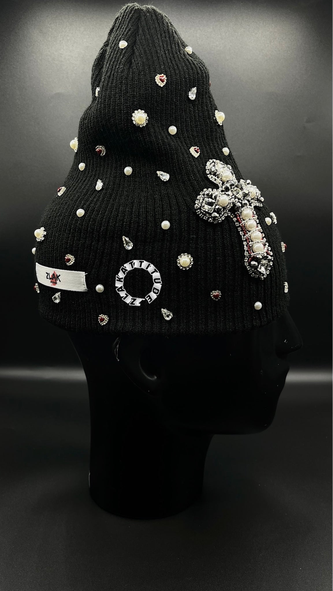 Affirme ton style avec le Black Royal Pearl Beanie, une pièce unique signée ZLAK ATTITUDE.